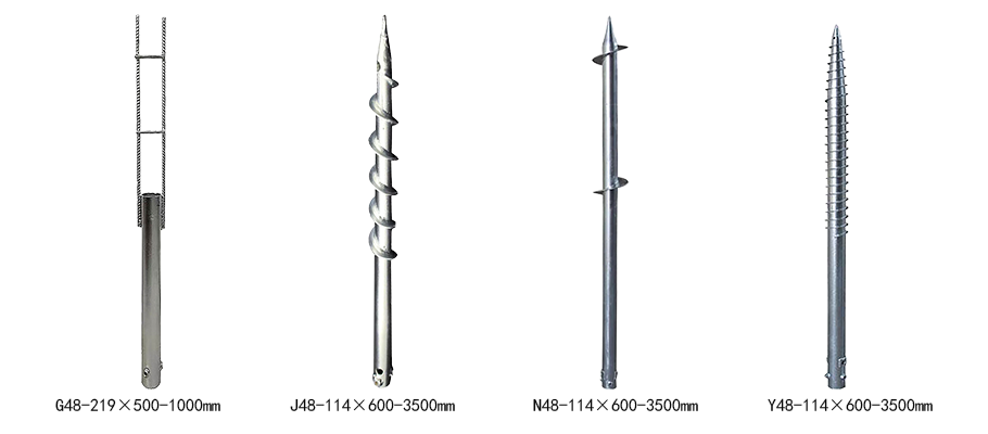 | 光伏地樁J48-114×600-3500mm | 48 60 68 76 89 114 mm | 600-3500mm | Q235B Q355B Q420B | 2.5-4mm | 熱鍍鋅 平均厚度≥80micron |